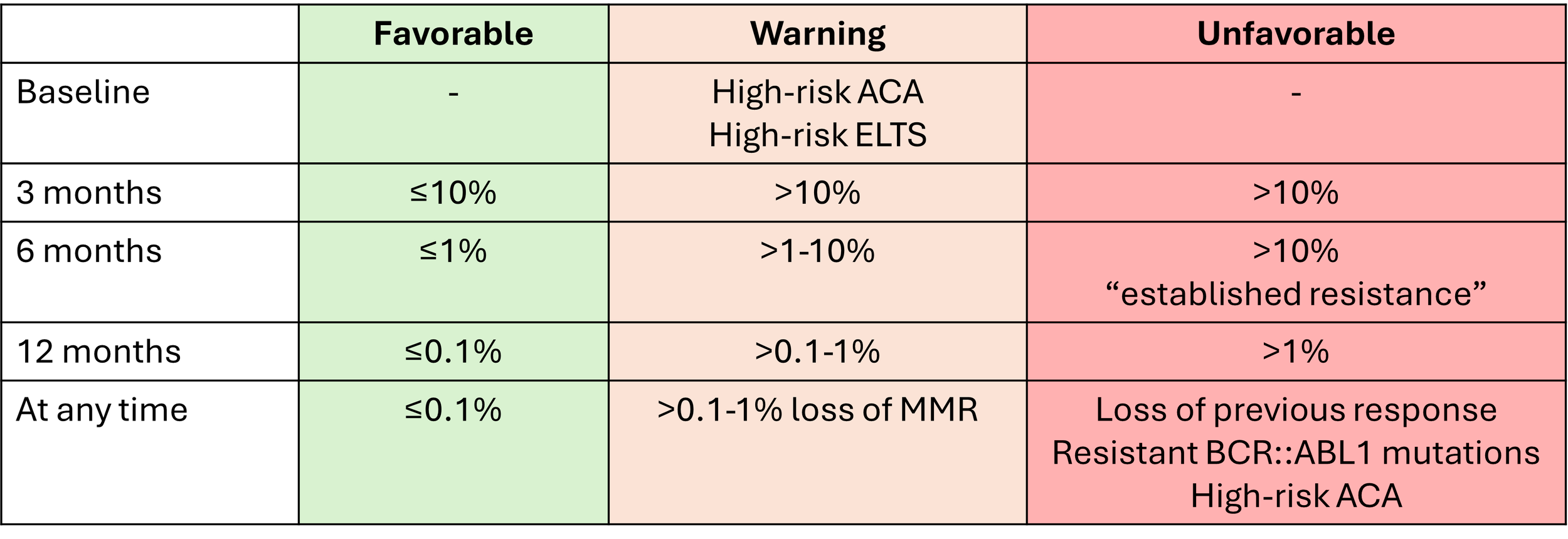 Table: Response milestones for 1st, 2nd and 3rd line TKI’s (ELN 2025)